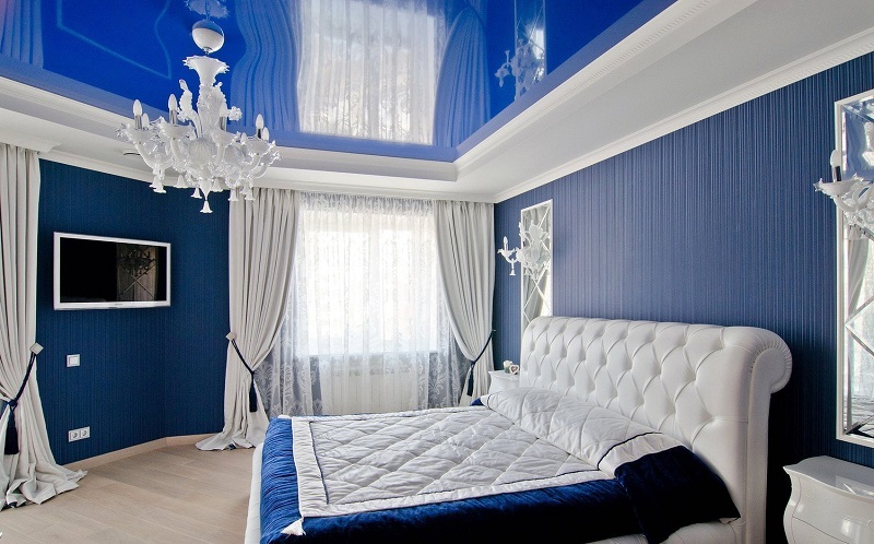 Сочетание разных оттенков синего в спальной комнате полезно использовать людям, занимающимся медитативными практиками, так как они помогают не только расслабиться, но и сосредоточиться на необходимых мыслях.