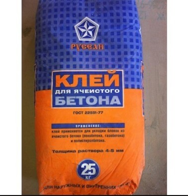 Монтажный клей для ячеистого бетона – сухая смесь, состоящая из вяжущего вещества, песка и добавок. Использованием клея достигается повышенная прочность соединения и высокая теплоизоляция.
